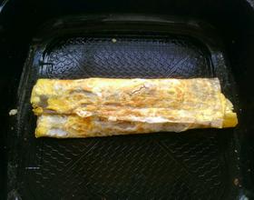 - 3. 翻面之后打上一个鸡蛋,然后把鸡蛋滩平