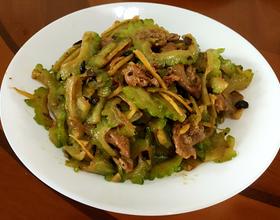 锅内再放适量油炒苦瓜,我中间加热水焖煮一下
