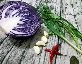 紫甘蓝洗净,切细丝用盐抓一下,清水冲洗虑干水