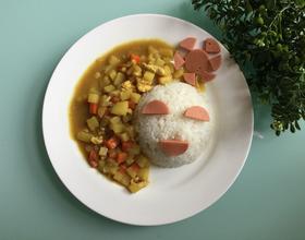 加上米饭,摆个造型!咖喱鸡饭做好了!