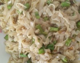 这次用的是宽点的面条,没有蒸一下,炒的都断了,没有圆的面条好,而且一定要在蒸锅里蒸熟,再拿出来再热水里面下,才好吃,还不会断