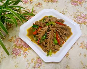 炒至变色,加青红椒蒜苗翻炒一会,加适量盐,少许味精,一匙胡椒粉,少许生抽,烹入料酒炒匀关火。