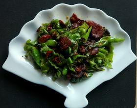 准备材料,青椒,川肠,辣椒,蒜头若干