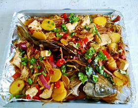 - 5. 把腌好的鱼放到洋葱等蔬菜上