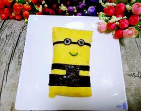 紫菜皮剪出这个形状,青瓜片剪两个圆做小黄人眼睛
