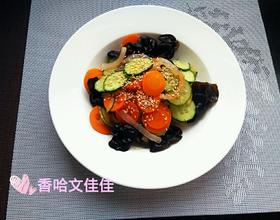 木耳沥干水,胡萝卜切片,洋葱切丝。