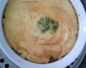 蒸蛋碗上盖个盘子,再上锅盖,中火继续蒸至5分钟,再小火3分钟,最后关火静至2分钟