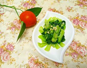 油锅烧热(油要稍微多一点,不然炒出来的青菜干巴巴的不好吃),下蒜蓉爆香。