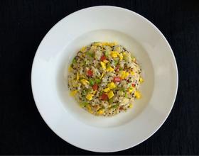 - 7. 然后放入煮熟的藜麦米饭炒均匀,放入适量的盐调味!