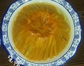 把南瓜放入蒸锅,蒸50分钟左右,取出扣到漂亮的菜盘中,就可以吃啦!