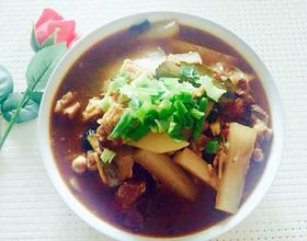 萝卜变色,牛肉烧软后,加点辣椒油和十三香料粉。
