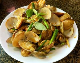 煮花蛤时一开口马上捞出,没开口的继续煮到开口,爆炒时一定要快速,不然肉容易老