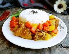 - 10. 浇上咖喱鸡肉,放一点青菜装饰,米饭上撒黑芝麻