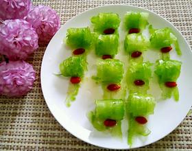 把苦瓜条卷起摆入盘中,依次做好
