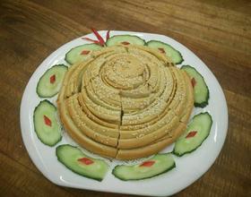 擀薄,拉长,中间刷芝麻酱,后卷起