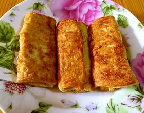 1、鸡蛋卷放入锅内后要迅速调低油温,因为如果油温过高,蛋液很容易就糊了。2、火腿我切成与吐司面包三分之一宽,这样吐司面包卷三折正好。
