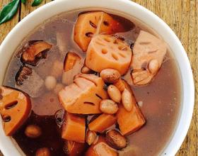 买回来的筒骨砍断焯水备用;莲藕削皮切块;黑豆花生洗好。