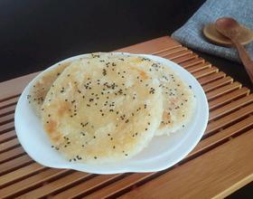 饼饼两面稍有硬度的时候,在饼的表面撒上一点白糖,继续烙。(我放的有点多了,随自己喜好,)
