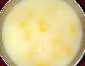把米入锅中,开了后,把切成小块的南瓜放进一起熬煮烂就可以,食用前加入适量的冰糖待溶化后即可。