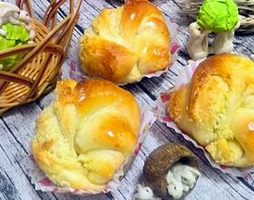 先做面包后做椰蓉馅,面包的做法跟土司面包配方一样,操作方法也一样。就是整理自由发挥,基本功好的做得漂亮!椰蓉馅等面团发酵了就可以做起来。