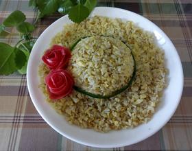 把碗里装上炒饭倒扣在盘里摆盘就好了。