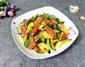 热锅放油、放蒜爆香、放黄瓜炒断生