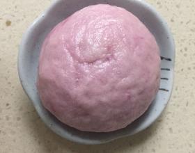 面粉中加入适量紫薯,20g糖活好发至两倍大
