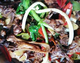 - 7. 将蒜片,姜片,略炒香,再放青红椒放点盐翻炒。