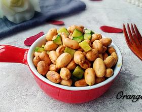 把黄瓜切丁,放在花生里,加葱蒜末,再加上调好的汤汁,拌匀即可