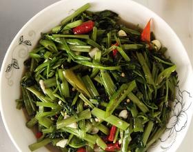 先爆炒空心菜后加入辣椒的用意是这样做出来的辣椒不会变软,而且辣味十足。另外空心菜和香菜辣炒味道很赞