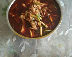 将油放在锅中烧热放入辣椒,葱,蒜,豆瓣酱,麻椒
