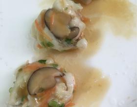 - 5. 腌制一下午左右吧,其实我是没时间直接放冰箱腌的。胡萝卜抽丝,香菇切片,香菜切末一起拌在鱼肉里挤成鱼丸放锅里大火蒸十分钟