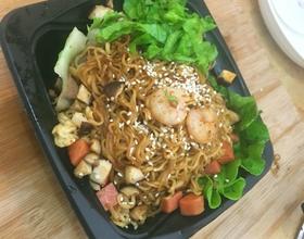首先把虾仁肉卷香菇用热水焯熟,八分即可。方便面热水煮开后,过凉水备用。