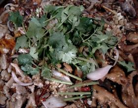 - 8. 鸭胗牛肉鸡爪分开铺在配菜上 加香菜断葱姜蒜