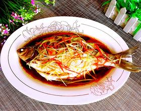 然后把加热的蒸鱼豉油从头到尾浇在鱼身上,好了,一条好看又好吃的清蒸武昌鱼就做好了,尝尝吧保证好吃呦!