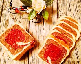 卷起与吐司盒一样的长度放在吐司盒中,烤箱发酵功能进行60分钟二发