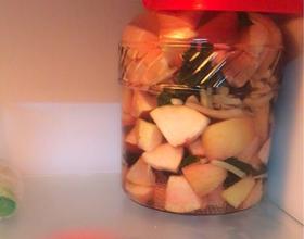- 1. 桃子用盐将外皮搓洗干净,晾干,切块。(桃子一定选那种硬硬的,脆脆的,不要软的。)