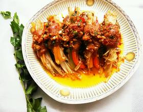 锅中放油,油温5成,将卷好的金针菇牛肉卷逐个放入油锅中炸1分钟捞起