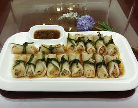- 6. 取一片萝卜,放上拌好的肉末,两边收拢。