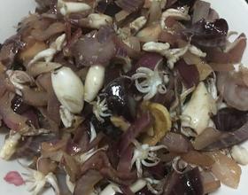 将小鱿鱼去皮,去内脏,去眼睛,清洗干净!因为它们很小清洗起来不方便