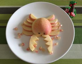 苹果的三分之一,戳两个小洞,用苹果籽做螃蟹眼睛