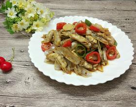 注意蛏子灼水时别焯老了,有没有沙灼水后都能看得见,可以用清水洗除再炒,全程大火快炒!