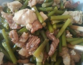 面条,肉,蒜苔