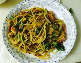 香肠炒面的做法
