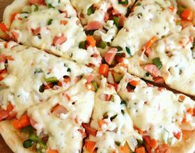 - 6. 把胡萝卜,洋葱,柿子椒,火腿肠,辣椒都切成丁,奶酪放到碗里备用。