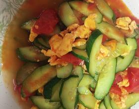 放入西红柿炒熟 在依次放入黄瓜 和鸡蛋