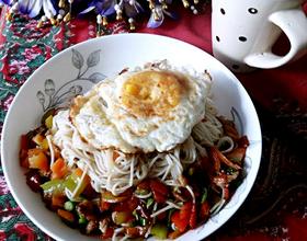 放油炒豆沫,炒至变色加酱油,五香粉,等调料。