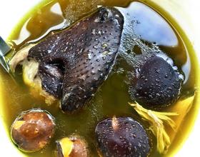 掉好水的乌鸡放进砂锅 将何首乌、西洋参、桂圆、香菇、黑豆、薏米、姜片放入砂锅倒水大火烧开后转小火熬三小时