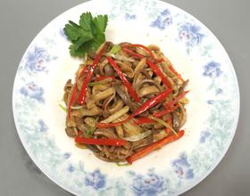 葱白红尖椒洗净切丝,姜切碎,蒜切小片,备好。