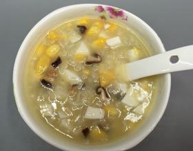 再最后放入咸鸭蛋丁和姜丝滚几下加入少许胡椒粉去腥提味。